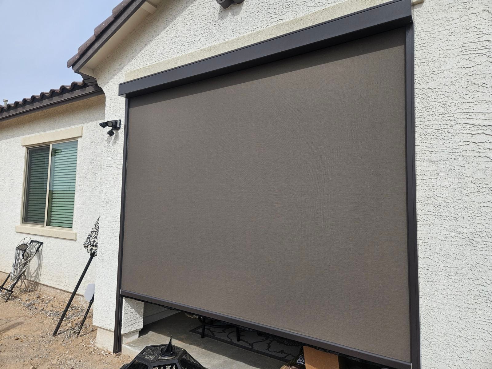 Retain your view while blocking up to 98% of UV rays, reducing heat and keeping insects out. Zipped guide system keeps fabric tensioned in wind.