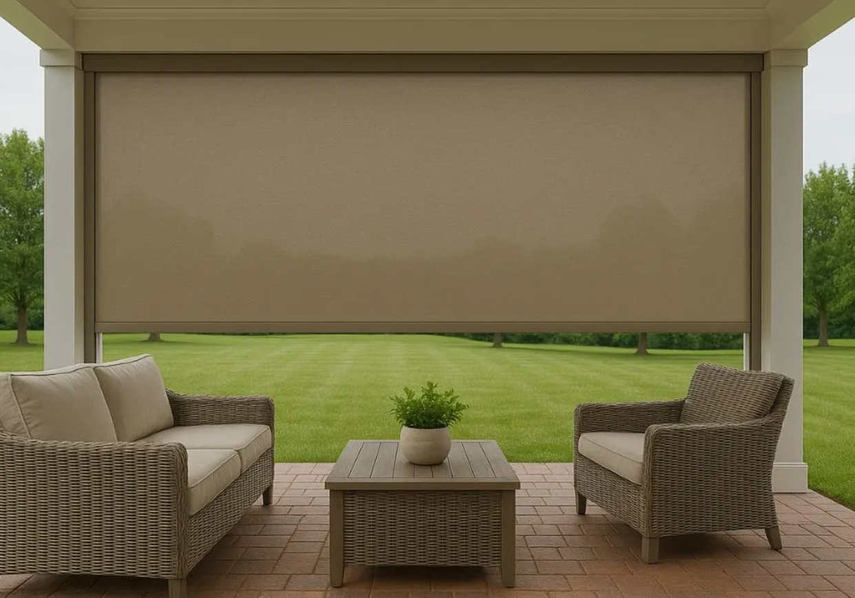 Australia's #1 outdoor blind system. Spring-balanced, no zips to thread, drops smoothly and locks at any height. UV-stabilised, wind-rated, and weatherproof.